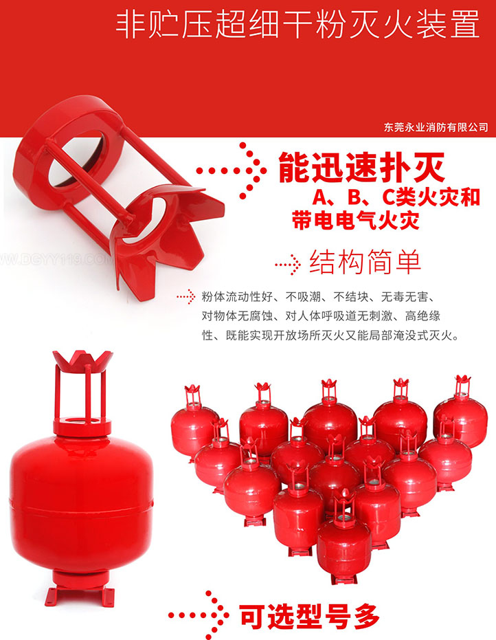 FFX-ACTX-YE型懸掛式超細干粉裝置(簡稱懸掛滅火裝置),是東莞永業(yè)消防設備有限公司生產的高效環(huán)保型新一代消防產品。其充裝的ABC超細干粉滅火劑無毒、無害,對保護物無腐蝕,對人體皮膚和呼吸道無刺激,滅火迅速,效率高,是哈龍滅火劑的理想替代品。該滅火裝置結構簡單,性能可靠,安裝維護方便,既可用于封閉空間全淹沒滅火,也可用于開放場所局部應用滅火。是工礦、學校、機關等部門理想的消防裝備。