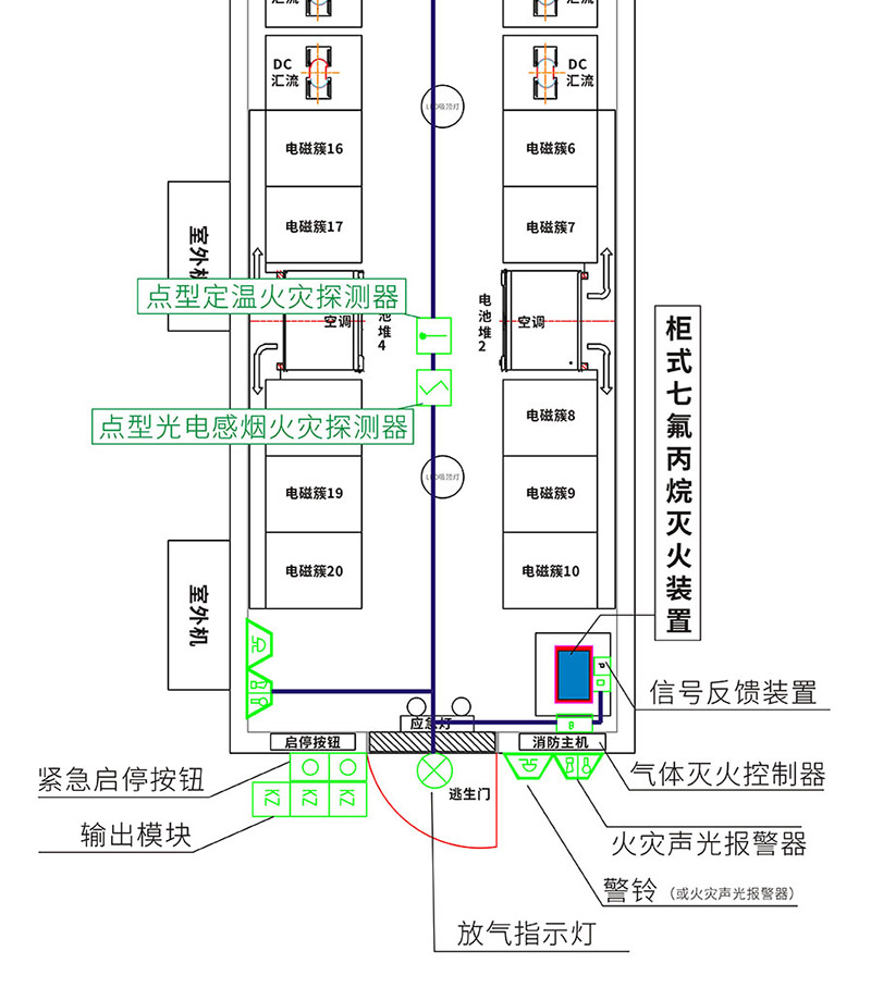 6、氣體滅火控制盤及火災報警控制器、聯(lián)動電源等壁掛與監(jiān)控室來控制其現(xiàn)場設備。